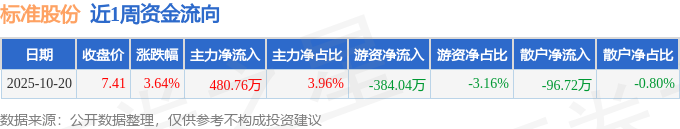 资金流向数据方面,本周标准股份主力资金合计净流入480.76万元,游资资金合计净流出384.04万元,散户资金合计净流出96.72万元。本周资金流向一览见下表: