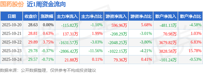 资金流向数据方面,本周国药股份主力资金合计净流出4394.62万元,游资资金合计净流出2602.38万元,散户资金合计净流入6997.0万元。本周资金流向一览见下表: