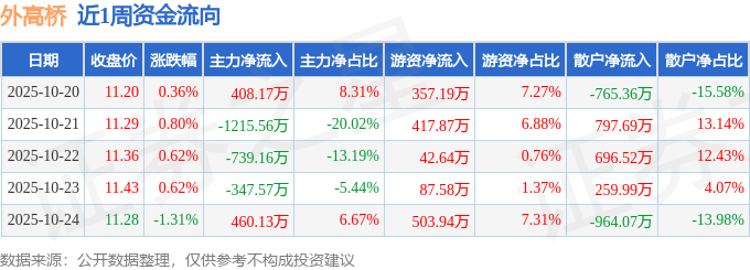资金流向数据方面,本周外高桥主力资金合计净流出1433.99万元,游资资金合计净流入1409.22万元,散户资金合计净流入24.77万元。本周资金流向一览见下表: