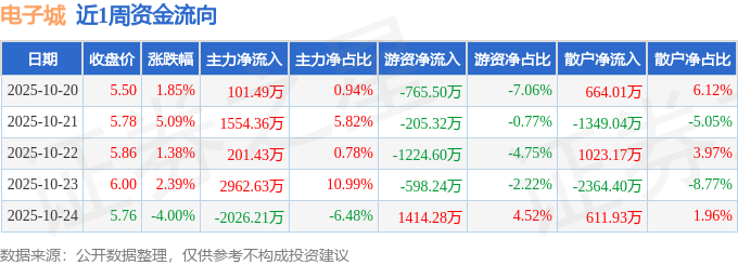 资金流向数据方面,本周电子城主力资金合计净流入2793.71万元,游资资金合计净流出1379.37万元,散户资金合计净流出1414.34万元。本周资金流向一览见下表: