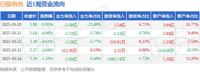 沪深股通持股方面,截止2025年10月24日收盘,白银有色沪股通持股数为4936.47万股,占流通股比为67.0%。