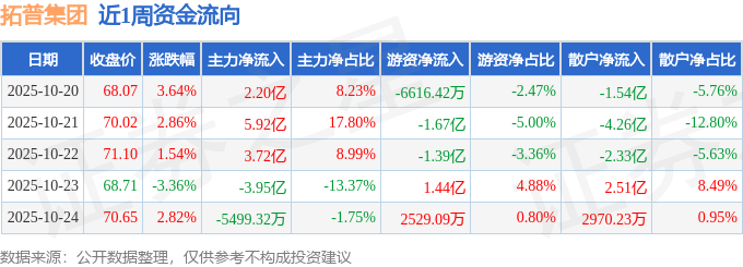 资金流向数据方面,本周拓普集团主力资金合计净流入7.34亿元,游资资金合计净流出2.02亿元,散户资金合计净流出5.32亿元。本周资金流向一览见下表: