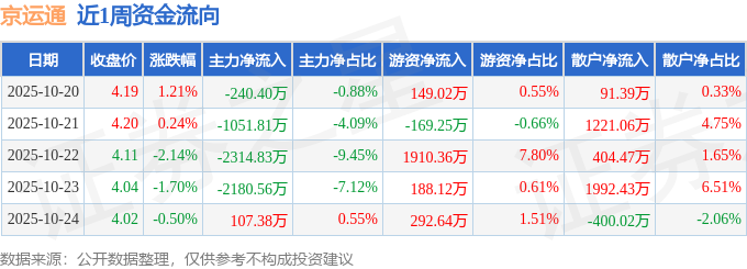 资金流向数据方面,本周京运通主力资金合计净流出5680.21万元,游资资金合计净流入2370.88万元,散户资金合计净流入3309.34万元。本周资金流向一览见下表: