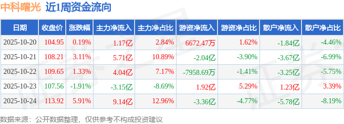 资金流向数据方面,本周中科曙光主力资金合计净流入16.91亿元,游资资金合计净流出3.62亿元,散户资金合计净流出13.29亿元。本周资金流向一览见下表: