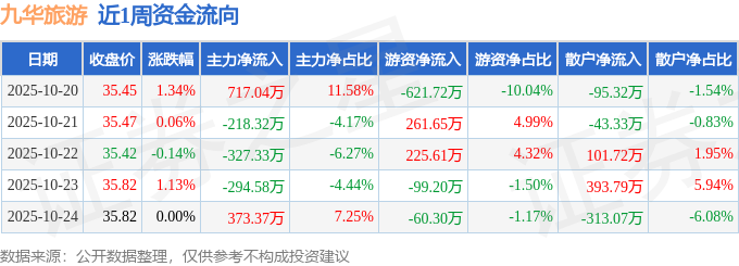 资金流向数据方面,本周九华旅游主力资金合计净流入250.18万元,游资资金合计净流出293.97万元,散户资金合计净流入43.79万元。本周资金流向一览见下表:
