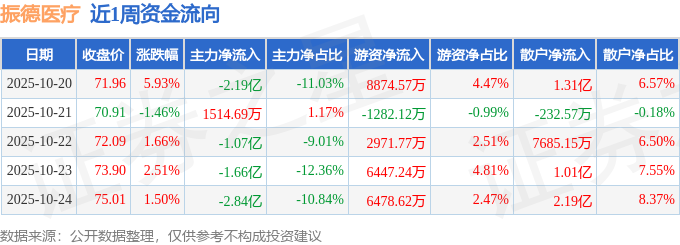 资金流向数据方面,本周振德医疗主力资金合计净流出7.6亿元,游资资金合计净流入2.35亿元,散户资金合计净流入5.25亿元。本周资金流向一览见下表: