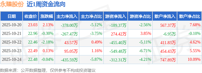 资金流向数据方面,本周永臻股份主力资金合计净流出942.44万元,游资资金合计净流出1232.14万元,散户资金合计净流入2174.58万元。本周资金流向一览见下表:
