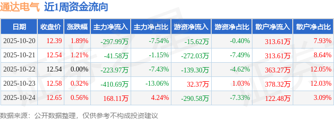 资金流向数据方面,本周通达电气主力资金合计净流出806.12万元,游资资金合计净流出685.17万元,散户资金合计净流入1491.29万元。本周资金流向一览见下表: