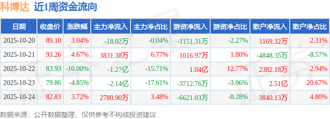 资金流向数据方面,本周科博达主力资金合计净流出2.75亿元,游资资金合计净流出109.02万元,散户资金合计净流入2.77亿元。本周资金流向一览见下表: