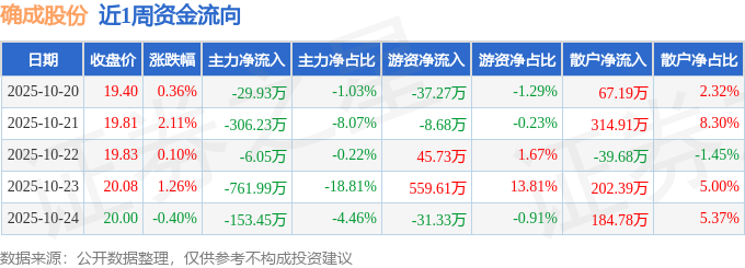 资金流向数据方面,本周确成股份主力资金合计净流出1257.65万元,游资资金合计净流入528.06万元,散户资金合计净流入729.59万元。本周资金流向一览见下表: