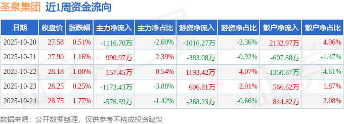 资金流向数据方面,本周圣泉集团主力资金合计净流出1718.3万元,游资资金合计净流入132.64万元,散户资金合计净流入1585.66万元。本周资金流向一览见下表: