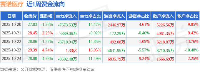 资金流向数据方面,本周赛诺医疗主力资金合计净流出1.34亿元,游资资金合计净流入4970.61万元,散户资金合计净流入8463.12万元。本周资金流向一览见下表:
