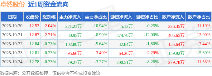 资金流向数据方面,本周卓然股份主力资金合计净流出338.58万元,游资资金合计净流出548.92万元,散户资金合计净流入887.5万元。本周资金流向一览见下表: