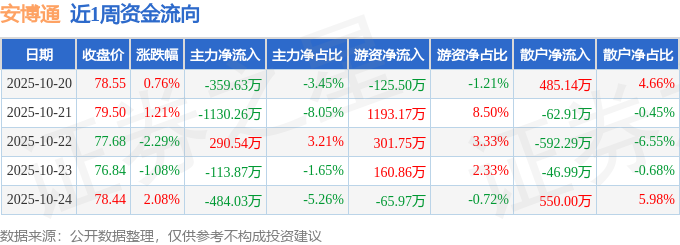 资金流向数据方面,本周安博通主力资金合计净流出1797.24万元,游资资金合计净流入1464.3万元,散户资金合计净流入332.94万元。本周资金流向一览见下表: