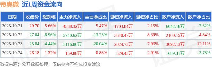 资金流向数据方面,本周帝奥微主力资金合计净流出6359.28万元,游资资金合计净流入7898.47万元,散户资金合计净流出1539.2万元。本周资金流向一览见下表: