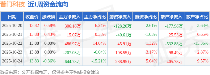 资金流向数据方面,本周普门科技主力资金合计净流出43.55万元,游资资金合计净流入224.61万元,散户资金合计净流出181.06万元。本周资金流向一览见下表: