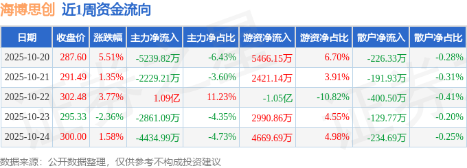 资金流向数据方面,本周海博思创主力资金合计净流出3859.94万元,游资资金合计净流入5043.16万元,散户资金合计净流出1183.22万元。本周资金流向一览见下表: