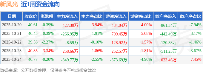 资金流向数据方面,本周新风光主力资金合计净流入60.64万元,游资资金合计净流入851.29万元,散户资金合计净流出911.93万元。本周资金流向一览见下表: