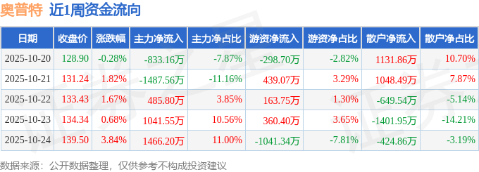 资金流向数据方面,本周奥普特主力资金合计净流入672.83万元,游资资金合计净流出376.81万元,散户资金合计净流出296.02万元。本周资金流向一览见下表: