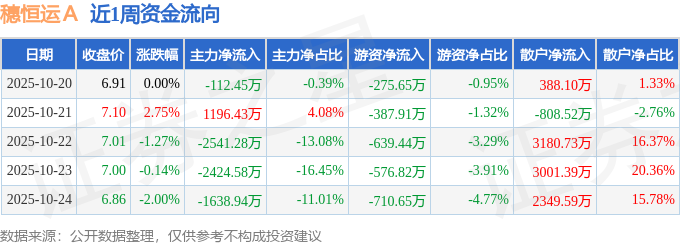 资金流向数据方面,本周穗恒运A主力资金合计净流出5520.82万元,游资资金合计净流出2590.47万元,散户资金合计净流入8111.29万元。本周资金流向一览见下表: