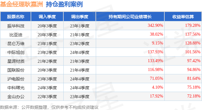 耿嘉洲管理的万家人工智能混合A基金在21年4季度买入芯源微,在持有2个季度后在22年2季度卖出。持有期间的估算收益率为-35.92%,持有期间芯源微在2021年到2022年的年报归属净利润增幅达158.77%。