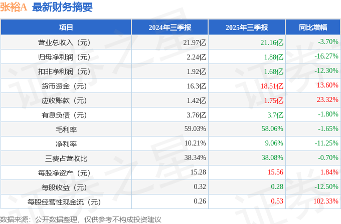 据证券之星公开数据整理,近期张裕A(000869)发布2025年三季报。根据财报显示,张裕A净利润同比下降16.27%。截至本报告期末,公司营业总收入21.16亿元,同比下降3.7%,归母净利润1.88亿元,同比下降16.27%。按单季度数据看,第三季度营业总收入6.45亿元,同比下降4.38%,第三季度归母净利润191.72万元,同比下降30.96%。