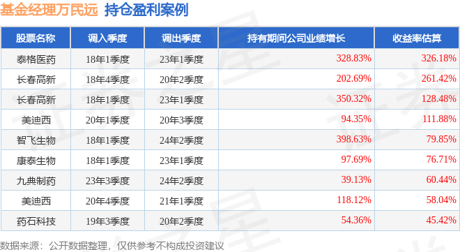 万民远管理的融通医疗保健行业混合A/B基金在18年1季度买入泰格医药,在持有5年又0个季度后在23年1季度卖出。持有期间的估算收益率为326.18%,持有期间泰格医药在2018年到2023年的年报归属净利润增幅达328.83%。