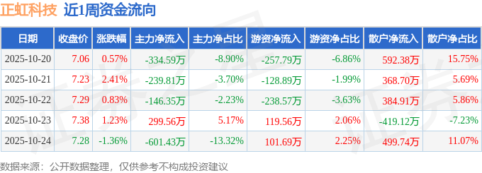 资金流向数据方面,本周正虹科技主力资金合计净流出1022.62万元,游资资金合计净流出404.0万元,散户资金合计净流入1426.62万元。本周资金流向一览见下表: