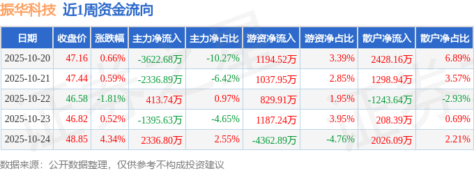 资金流向数据方面,本周振华科技主力资金合计净流出4604.66万元,游资资金合计净流出113.28万元,散户资金合计净流入4717.93万元。本周资金流向一览见下表: