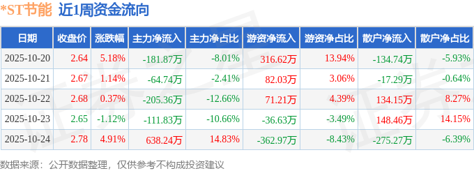 资金流向数据方面,本周*ST节能主力资金合计净流入74.44万元,游资资金合计净流入70.26万元,散户资金合计净流出144.69万元。本周资金流向一览见下表: