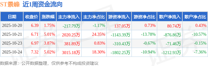 资金流向数据方面,本周*ST景峰主力资金合计净流入5199.53万元,游资资金合计净流出3119.02万元,散户资金合计净流出2080.51万元。本周资金流向一览见下表:
