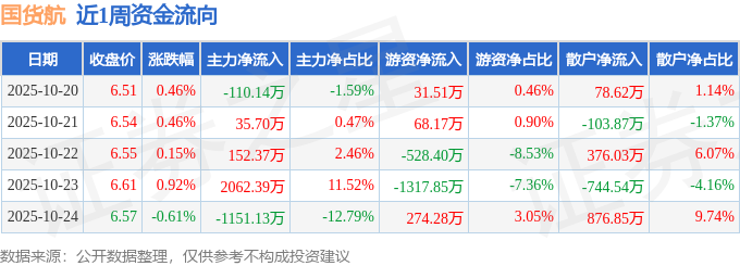 资金流向数据方面,本周国货航主力资金合计净流入989.19万元,游资资金合计净流出1472.27万元,散户资金合计净流入483.09万元。本周资金流向一览见下表: