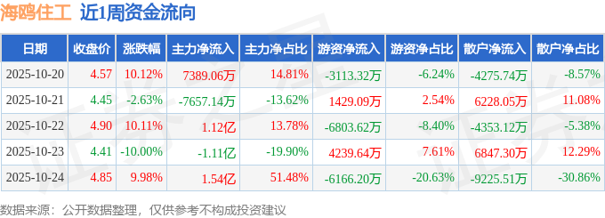 资金流向数据方面,本周海鸥住工主力资金合计净流入1.52亿元,游资资金合计净流出1.04亿元,散户资金合计净流出4779.02万元。本周资金流向一览见下表: