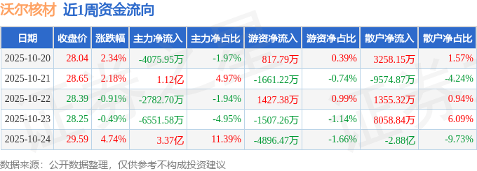 资金流向数据方面,本周沃尔核材主力资金合计净流入3.15亿元,游资资金合计净流出5819.78万元,散户资金合计净流出2.57亿元。本周资金流向一览见下表: