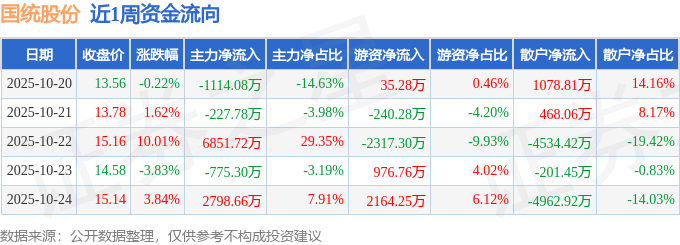 资金流向数据方面,本周国统股份主力资金合计净流入7533.22万元,游资资金合计净流入618.71万元,散户资金合计净流出8151.92万元。本周资金流向一览见下表: