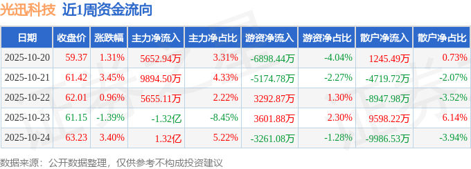 沪深股通持股方面,截止2025年10月24日收盘,光迅科技深股通持股数为1406.27万股,占流通股比为186.0%。