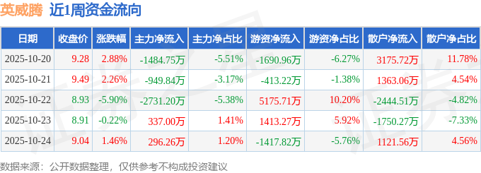 资金流向数据方面,本周英威腾主力资金合计净流出4532.53万元,游资资金合计净流入3066.98万元,散户资金合计净流入1465.54万元。本周资金流向一览见下表: