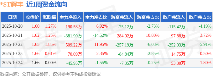 资金流向数据方面,本周*ST辉丰主力资金合计净流入342.0万元,游资资金合计净流出140.48万元,散户资金合计净流出201.51万元。本周资金流向一览见下表: