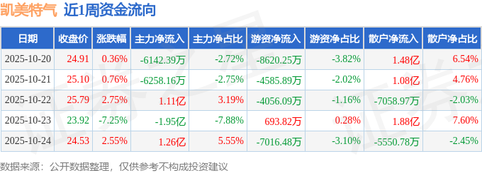 资金流向数据方面,本周凯美特气主力资金合计净流出8243.5万元,游资资金合计净流出2.36亿元,散户资金合计净流入3.18亿元。本周资金流向一览见下表:
