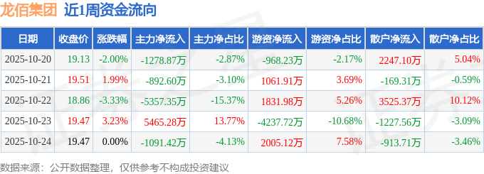 资金流向数据方面,本周龙佰集团主力资金合计净流出3154.96万元,游资资金合计净流出306.94万元,散户资金合计净流入3461.9万元。本周资金流向一览见下表: