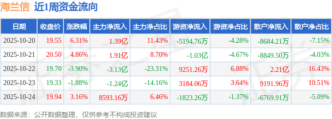 资金流向数据方面,本周海兰信主力资金合计净流出2121.27万元,游资资金合计净流出4842.86万元,散户资金合计净流入6964.13万元。本周资金流向一览见下表: