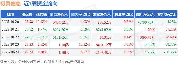 资金流向数据方面,本周初灵信息主力资金合计净流入1.49亿元,游资资金合计净流入2276.57万元,散户资金合计净流出1.71亿元。本周资金流向一览见下表:
