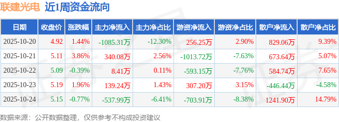 资金流向数据方面,本周联建光电主力资金合计净流出1135.58万元,游资资金合计净流出1747.32万元,散户资金合计净流入2882.89万元。本周资金流向一览见下表: