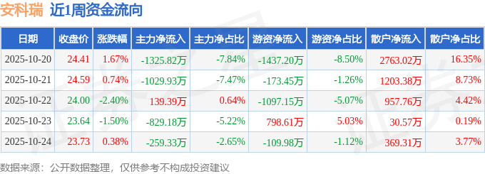 资金流向数据方面,本周安科瑞主力资金合计净流出3304.87万元,游资资金合计净流出2019.16万元,散户资金合计净流入5324.04万元。本周资金流向一览见下表: