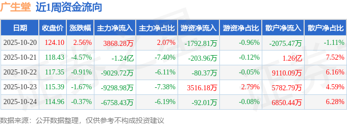 资金流向数据方面,本周广生堂主力资金合计净流出3.36亿元,游资资金合计净流入1347.03万元,散户资金合计净流入3.22亿元。本周资金流向一览见下表: