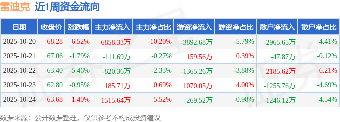 资金流向数据方面,本周雷迪克主力资金合计净流入7627.63万元,游资资金合计净流出4297.84万元,散户资金合计净流出3329.79万元。本周资金流向一览见下表: