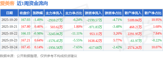 资金流向数据方面,本周爱美客主力资金合计净流出9184.74万元,游资资金合计净流出1197.55万元,散户资金合计净流入1.04亿元。本周资金流向一览见下表: