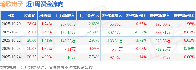 资金流向数据方面,本周瑜欣电子主力资金合计净流出1233.24万元,游资资金合计净流出522.12万元,散户资金合计净流入1755.36万元。本周资金流向一览见下表: