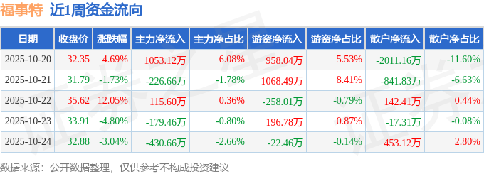 资金流向数据方面,本周福事特主力资金合计净流入331.94万元,游资资金合计净流入1942.83万元,散户资金合计净流出2274.77万元。本周资金流向一览见下表: