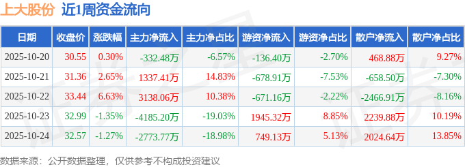 资金流向数据方面,本周上大股份主力资金合计净流出2815.98万元,游资资金合计净流入1207.98万元,散户资金合计净流入1608.0万元。本周资金流向一览见下表: